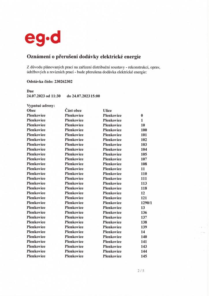 Oznámení přerušení dodávky elektrické energie