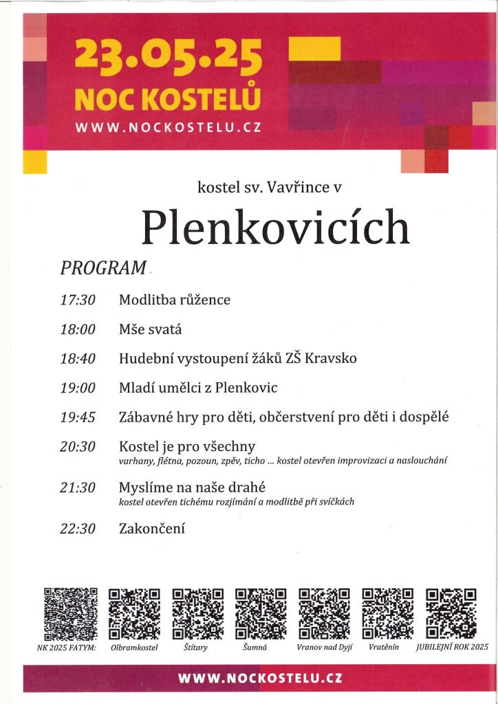 Noc kostelů v Plenkovicích nabídne pestrý program pro všechny věkové kategorie. Akce začne modlitbou růžence a pokračuje mší svatou. Děti mohou zúčastnit her a občerstvení, zatímco dospělí si užijí hudební vystoupení a tichou atmosféru kostela. Na závěr proběhne rozjímání při svíčkách.